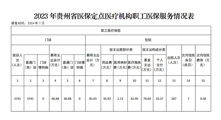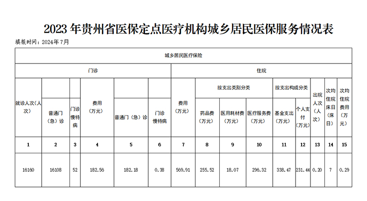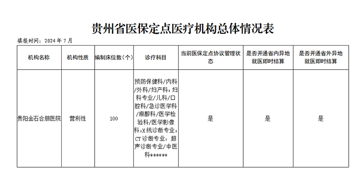 贵阳金石合朋医院2023年省医疗保障信息披露