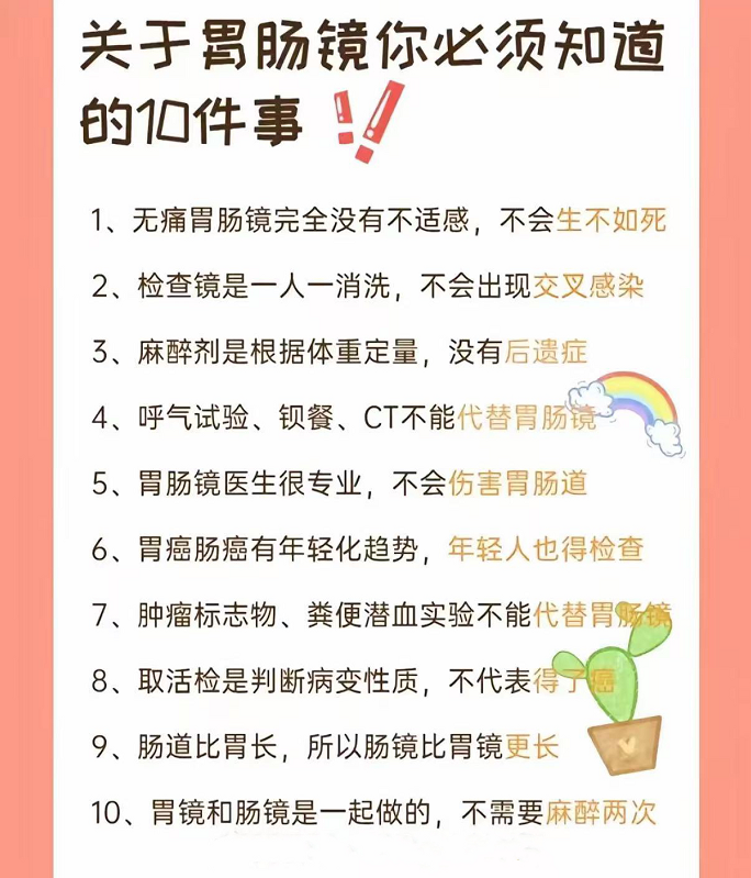 ◆高危人群筛查:对于有胃肠道肿瘤家族史、长期不良饮食习惯、幽门螺杆菌感染等高危因素的人群,定期进行胃肠镜检查,可及早发现潜在病变和处理。早发现、早治疗。